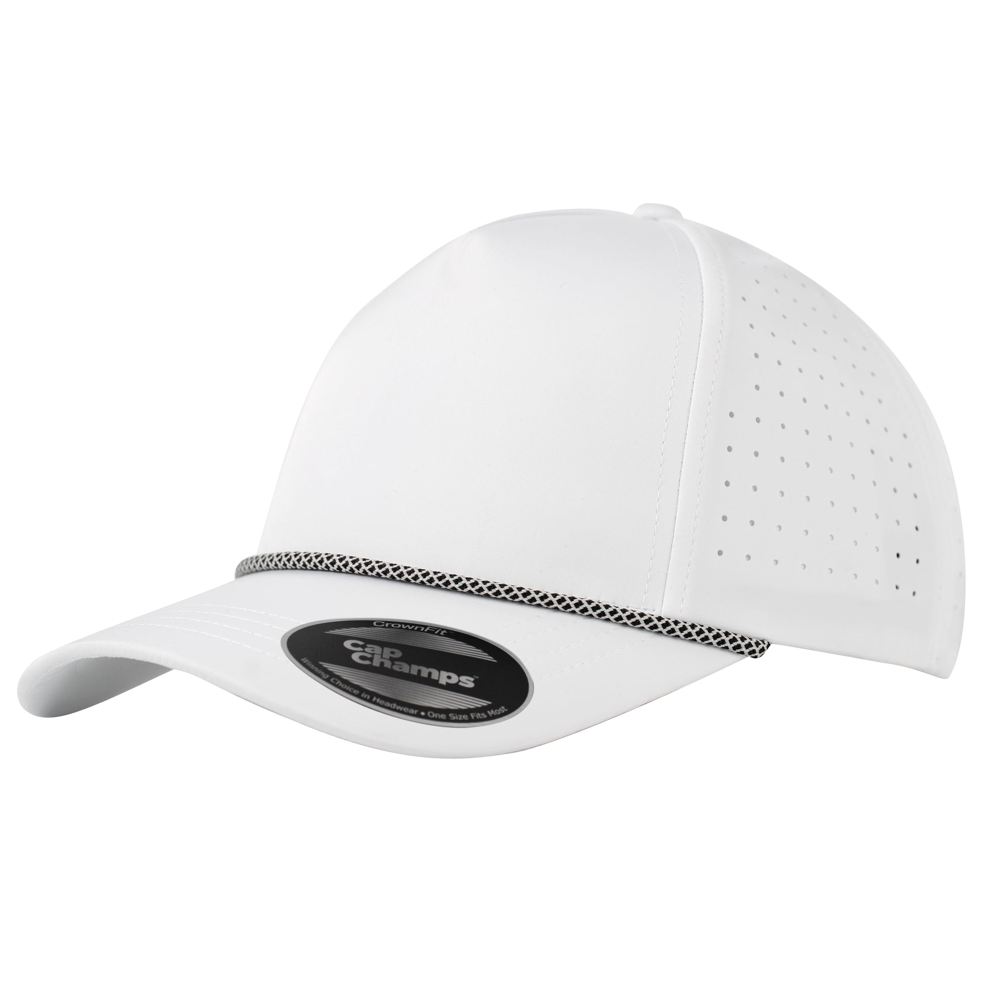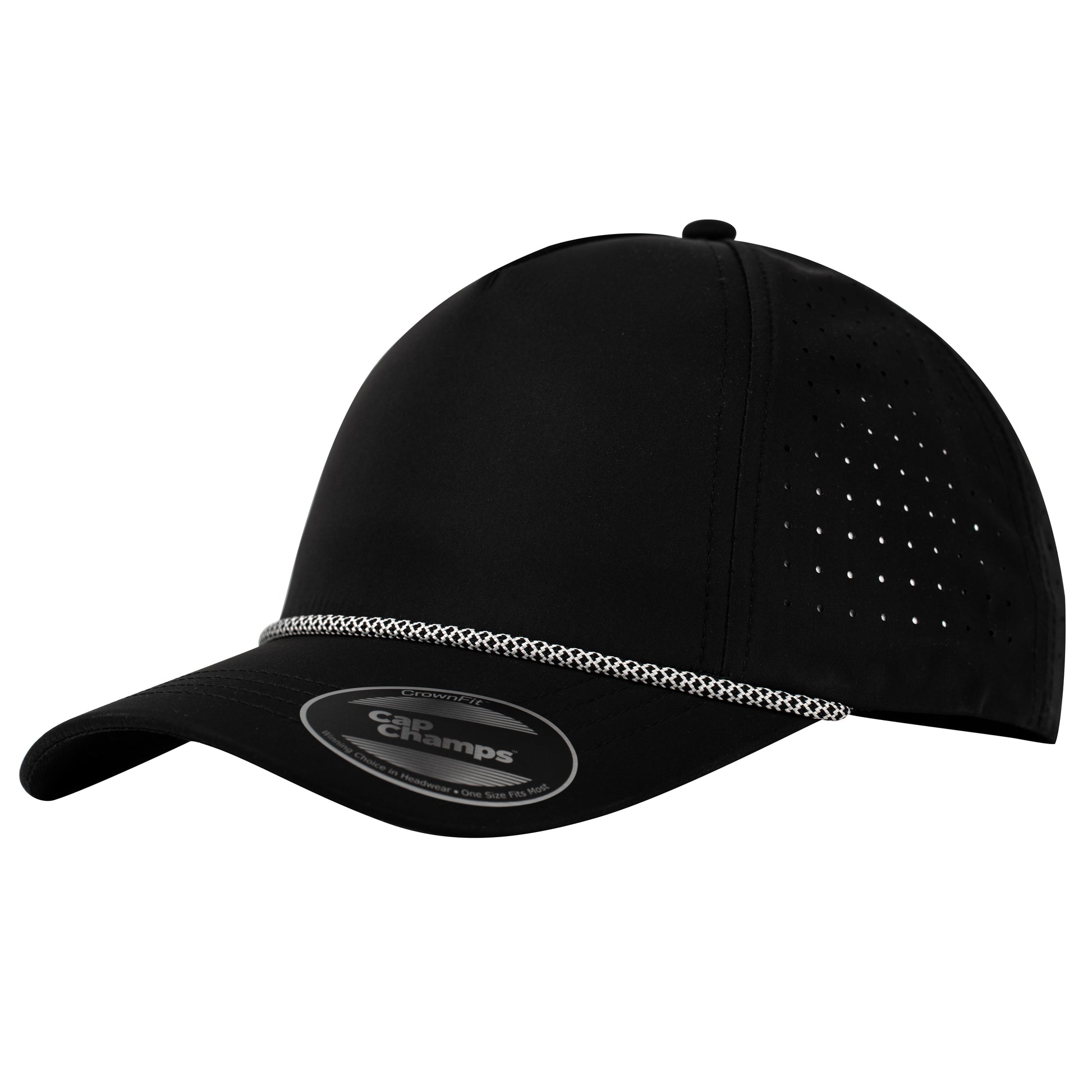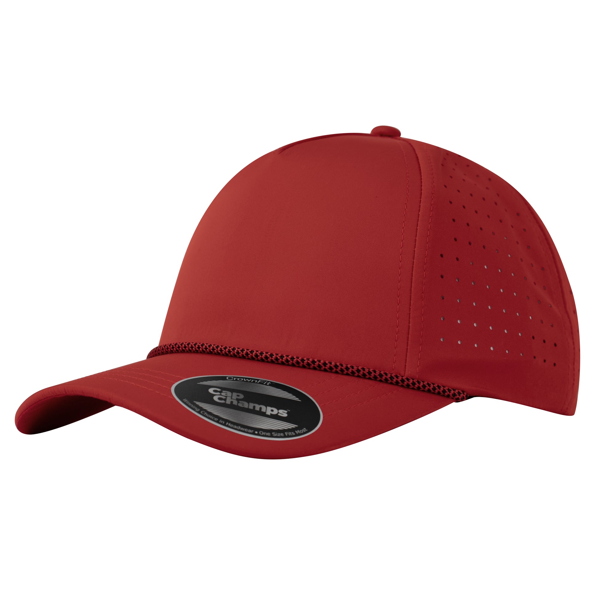 The CrownFit™ Rope AquaShield has a special fabric and a rope on the brim. It's good for both performance and style, whether you're playing sports or not. Our golf hat is made from really good materials, so it's light and lets air through, keeping you comfortable even when it's really hot. It stops sweat, so you'll stay cool and dry when you're playing